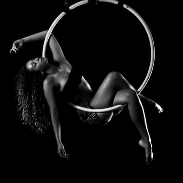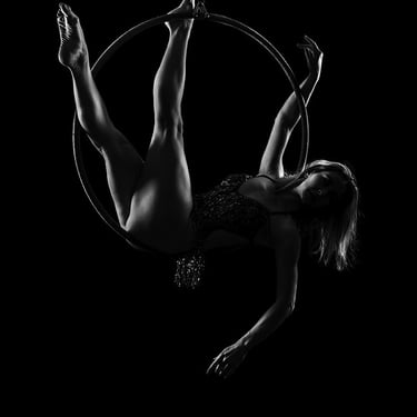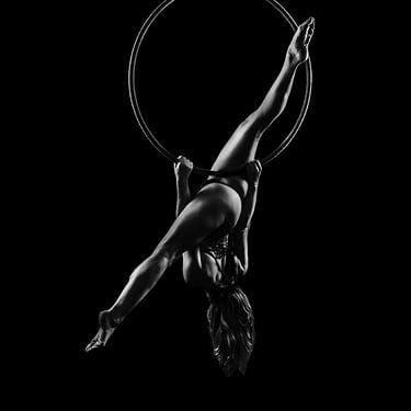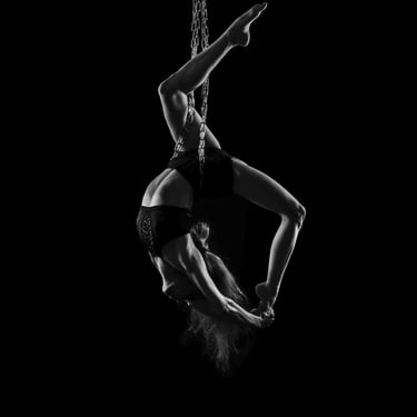 I began photographing pole dance in 2016, before expanding my universe to aerial hoop in 2017. Very quickly, I realized what fascinated me most was how light could enhance movement — every line, every detail of the body in motion.