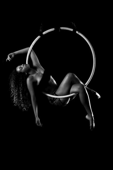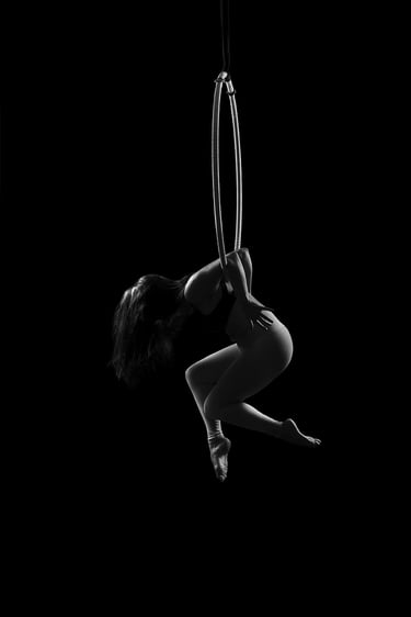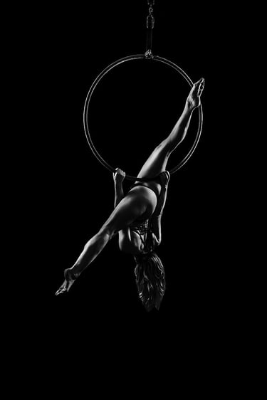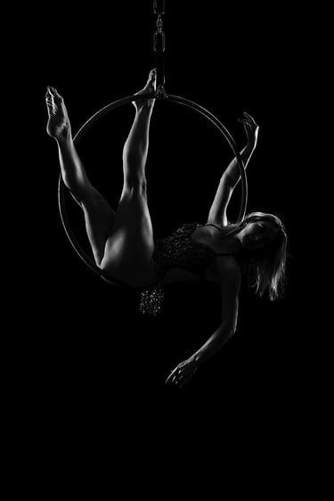 J'ai commencé la photo de pole dance en 2016 et je l'ai étendue au cerceau aérien en 2017. Très vite, j’ai su que ce qui me fascinait, c’était la manière dont la lumière pouvait sublimer chaque mouvement, chaque ligne, chaque détail du corps en action.